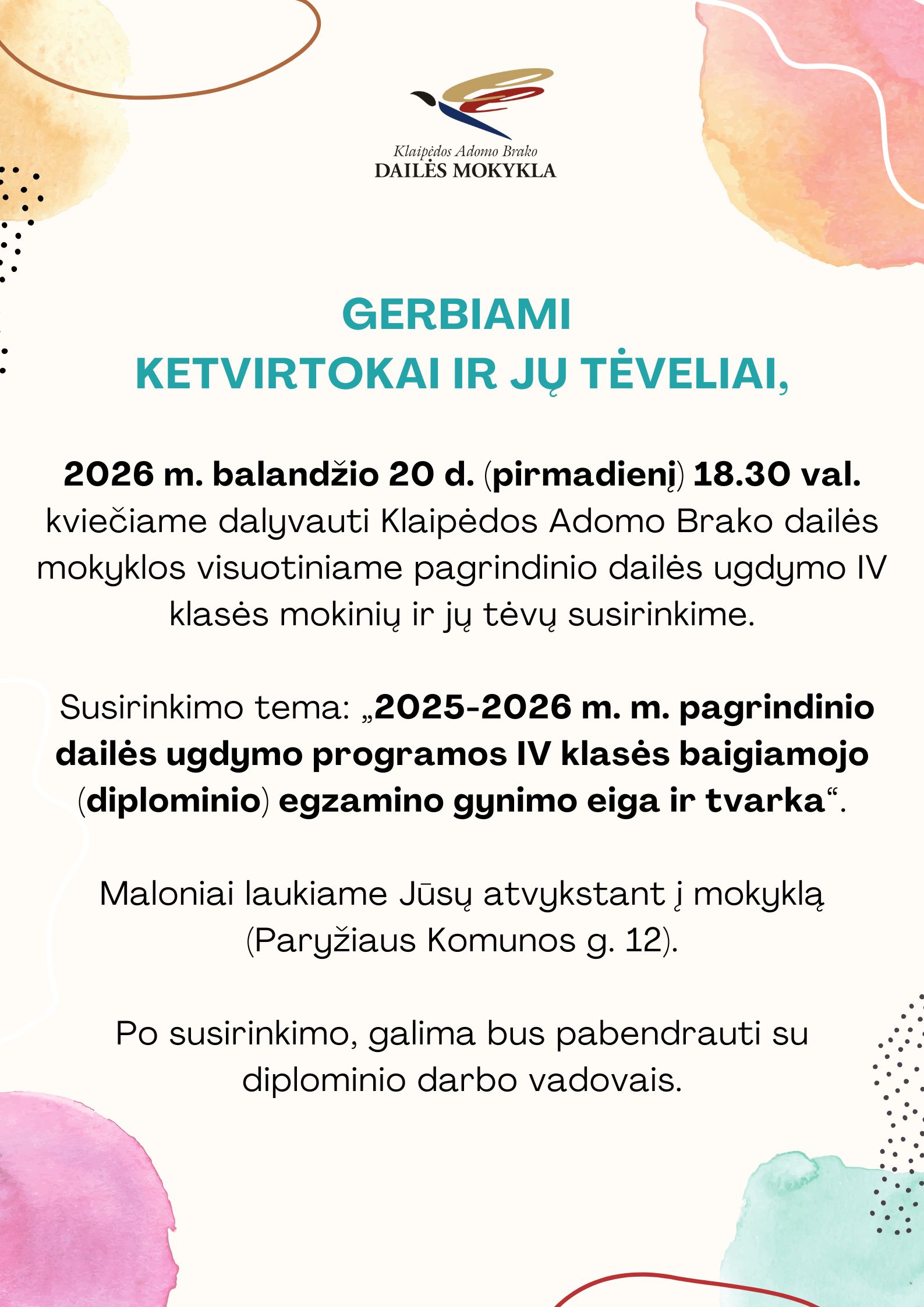 Klaipėdos Brako Dailės Mokykla » Renginiai » Ketvirtokų ir jų tėvelių susirinkimas