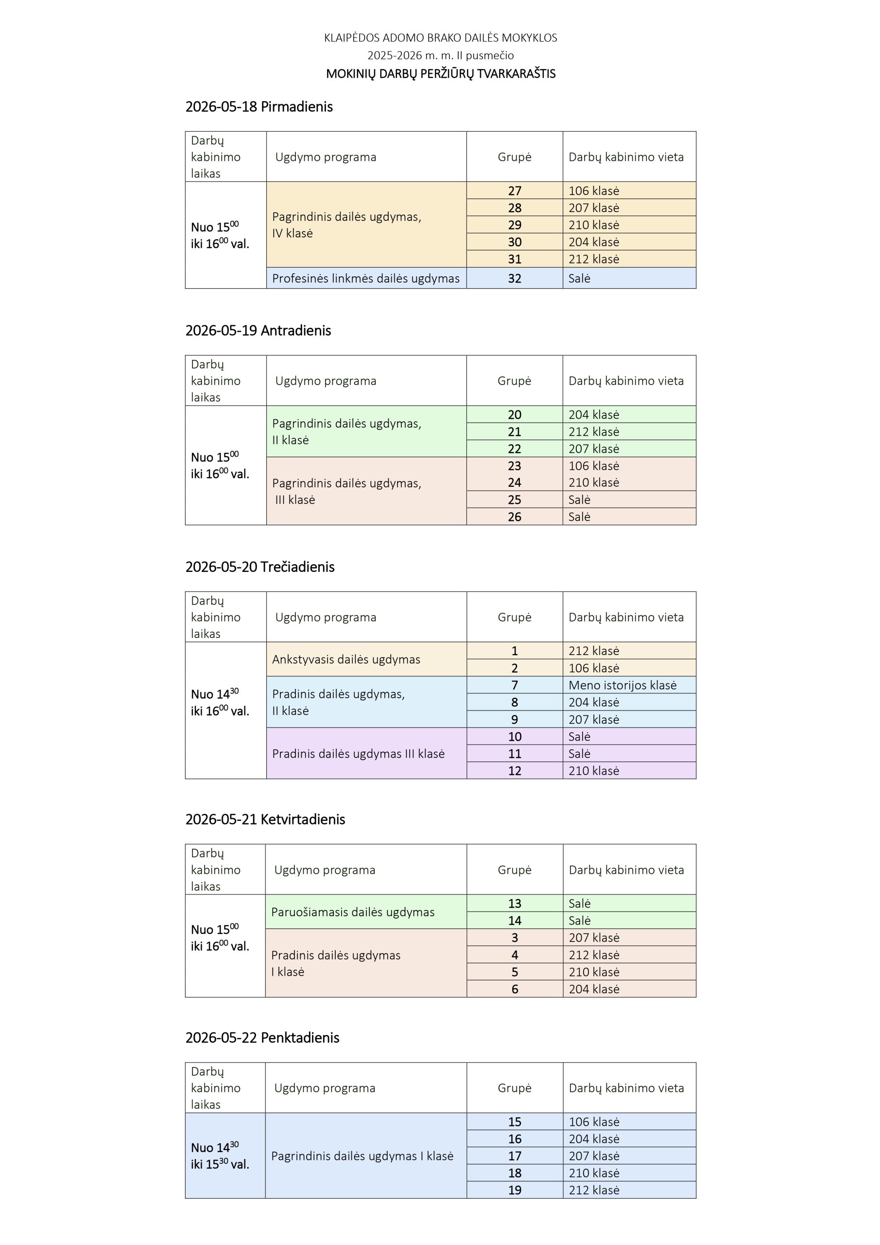 2025-2026 m. m. mokinių darbų peržiūrų tvarkaraštis